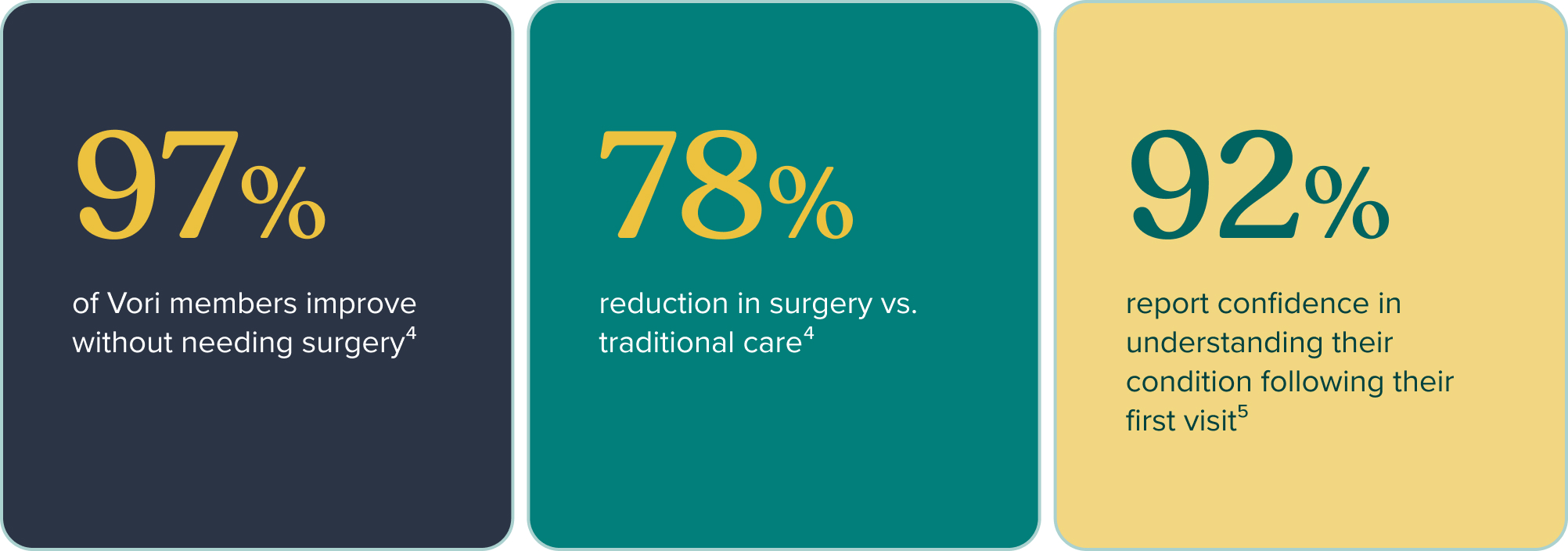 5. JMIR Formative Research (2025). 92% of Vori Health members report increased confidence in understanding their condition and treatment plan after their first integrated visit. vorihealth.com/resource/vori-health-cuts-care-delays-boosts-treatment-confidence